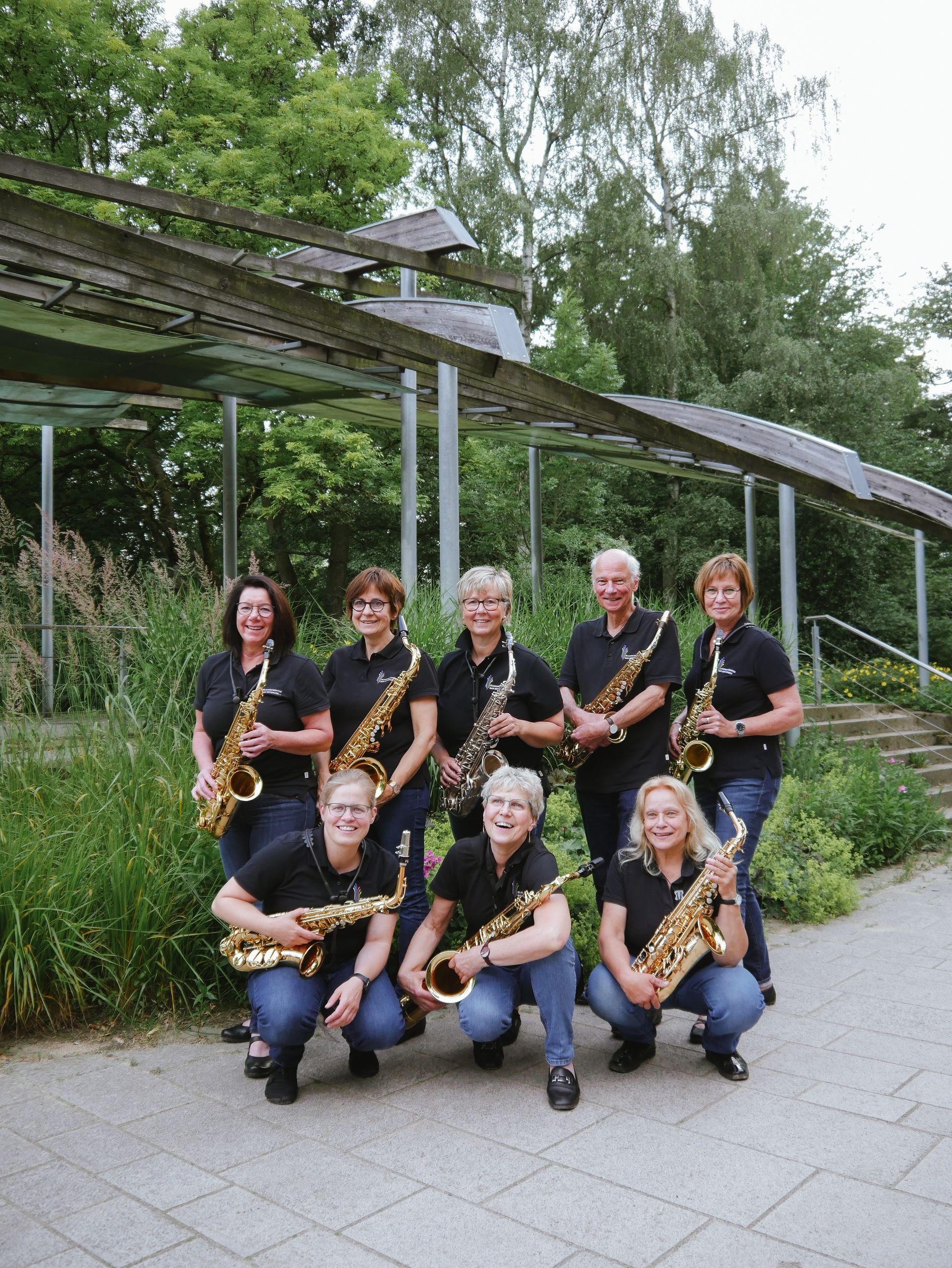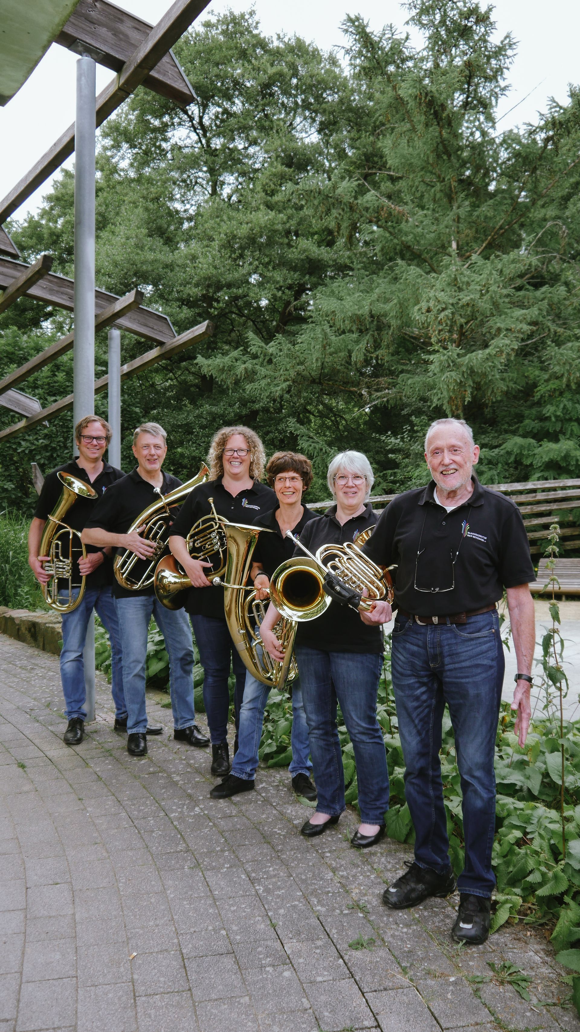 Im Mittelpunkt stehen bei uns natürlich die Blasinstrumente, wovon in unserer Besetzung mit Tuba, Posaune, Tenorhorn, Trompete, Saxophon, Klarinette und Querflöte schon eine Vielzahl